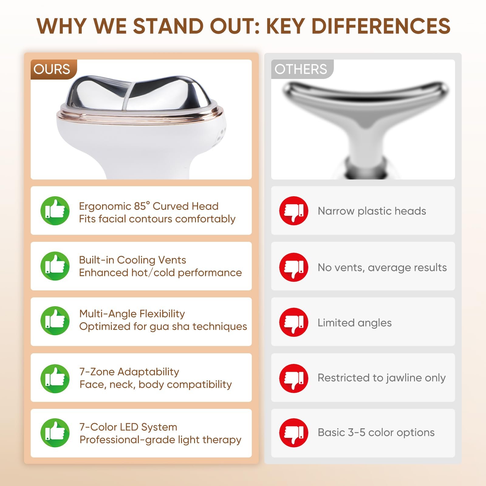 The device features 7 different light modes, including red light therapy, allowing users to choose a setting that matches their skincare routine.